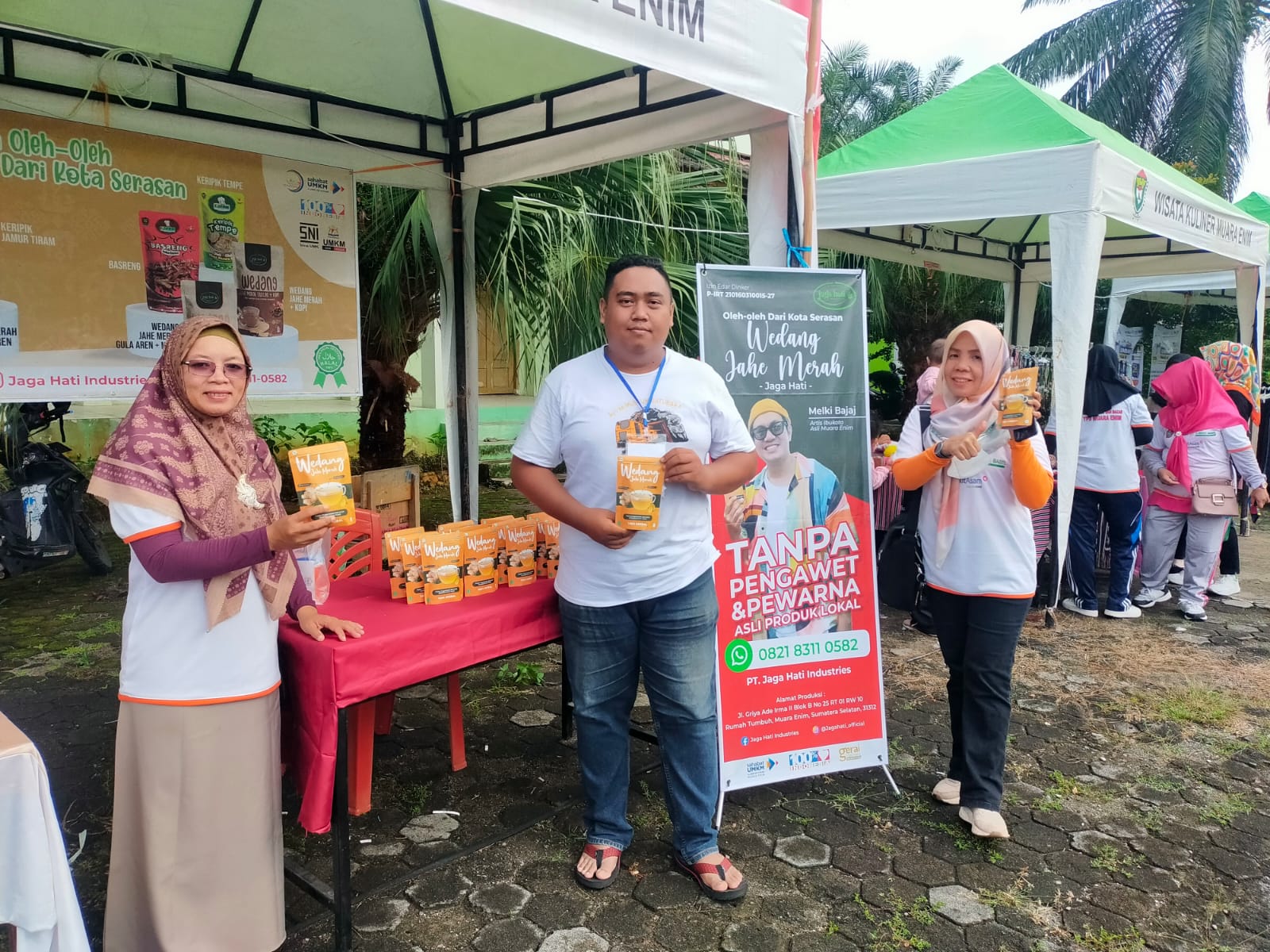 Muara Enim, inilahmuaraenim.co.id -Kegiatan Bazar yang dilakukan di Kampus Universitas Serasan Muara Enim, Kamis (08/09/2022) pagi di ikuti salah satu produk asal Kabupaten Muara Enim yakni Jaga Hati Industries dengan menyajikan salah satu produk andalannya yakni Wedang Jahe Merah.