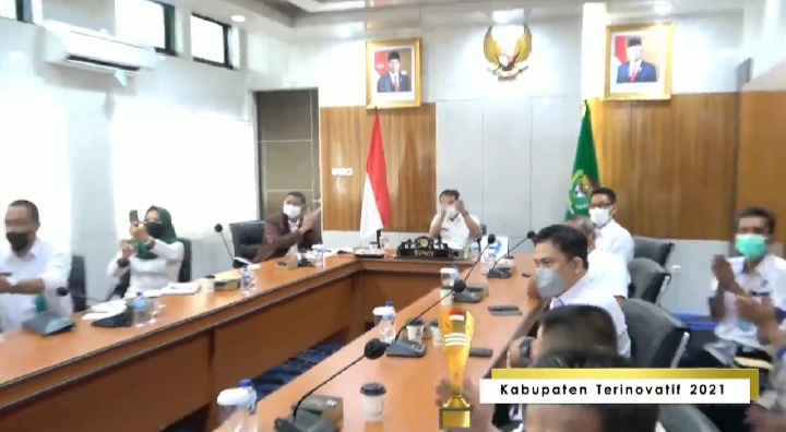 Muara Enim, inilahmuaraenim.co.id– Kementerian Dalam Negeri RI (Kemendagri), Dr. Eko Prasetyo P.P., S.Si., M.Si., M.A. Rabu (29/12) kemarin melalui Plh. Kepala Badan Penelitian dan Pengembangan (Balitbang) , mengumumkan Pemkab. Muara Enim sebagai peringkat 4 nasional pemerintah kabupaten paling inovatif di Indonesia dalam anugerah Innovative Government Award (IGA) 2021. Penghargaan yang diserahkan secara daring oleh Mendagri, Prof. Drs. H. Muhammad Tito Karnavian, M.A., Ph.D., kepada Pj. Bupati Muara Enim, Dr. H. Nasrun Umar, S.H., M.M., ini menjadikan Kabupaten Muara Enim sebagai kabupaten paling inovatif di luar Pulau Jawa dari total 415 kabupaten di Indonesia.