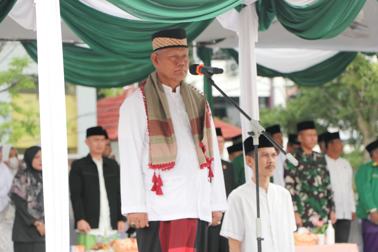 Muara Enim, inilahmuaraenim.co.id – Pj. Sekretaris Daerah Kabupaten Muara Enim, H. Riswandar, S.H., M.H., yang hadir bersama Forkopimda Kab. Muara Enim bertindak sebagai inspektur upacara pimpin peringatan Hari Santri Nasional (HSN) ke-8 tahun 2022 di Lapangan Merdeka Kab. Muara Enim, Sabtu (22/10/22).