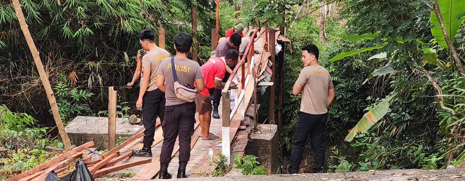 Dalam pelaksanaan perbaikan, dikerahkan sebanyak 15 personel dari Satuan Samapta yang dipimpin langsung oleh Kabag Ops Polres Muara Enim Kompol Herry Widodo, S.H., bersama Kasat Samapta Iptu Lukman Hartono, S.H. Seluruh personel bahu-membahu melakukan penggantian papan yang lapuk serta pemasangan pengaman di sisi jembatan.