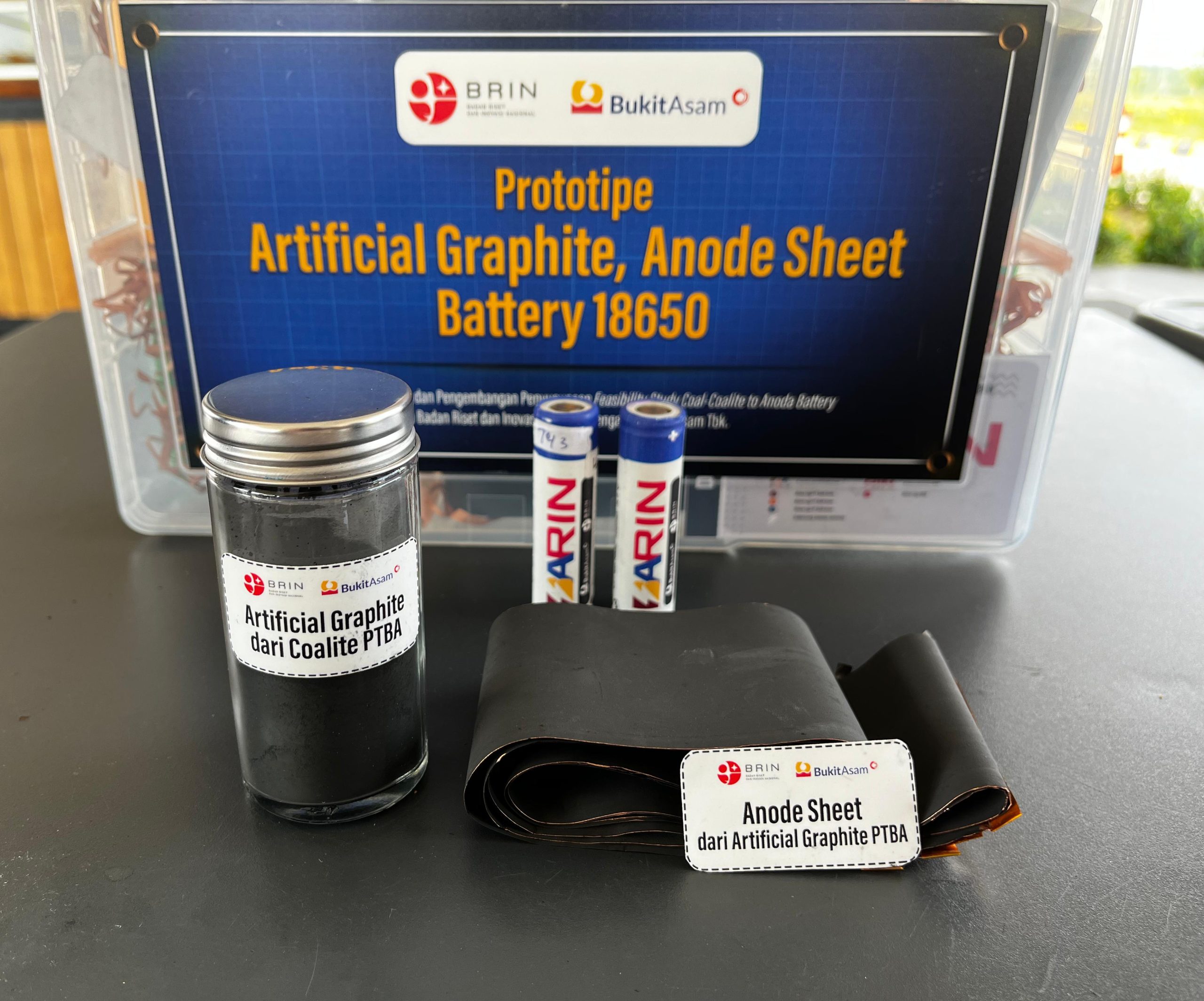 Melalui kerja sama dengan Badan Riset dan Inovasi Nasional (BRIN), PTBA memulai pilot project konversi batu bara menjadi Artificial Graphite dan Anode Sheet untuk bahan baku baterai, terutama baterai Lithium-ion (Li-ion). Peluncuran perdana (soft launching) pilot project Artificial Graphite dan Anode Sheet telah dilakukan di Kawasan Industri Tanjung Enim pada 15 Juli 2024.